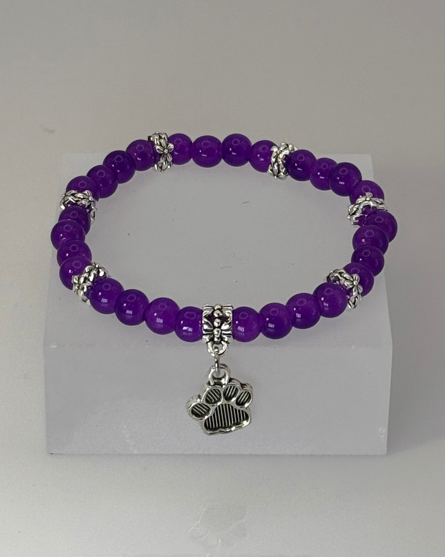 Show off your personality with this stunning purple beaded bracelet, designed for animal lovers and style enthusiasts alike. With vibrant beads, silver-toned details, and a charming paw pendant, it’s a perfect mix of fun and elegance.